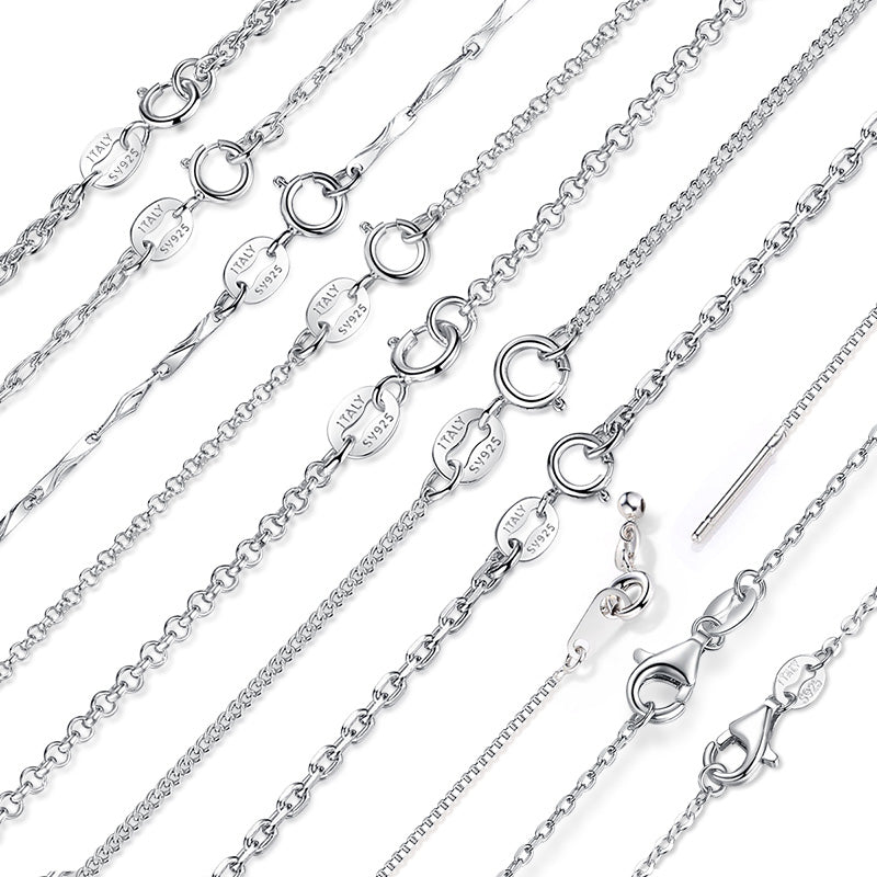 BAMOER Classic Basic Chain 100% 925 Sterling Silver Lobster Clasp Adjustable Necklace Chain Fashion Jewelry SCA009-45